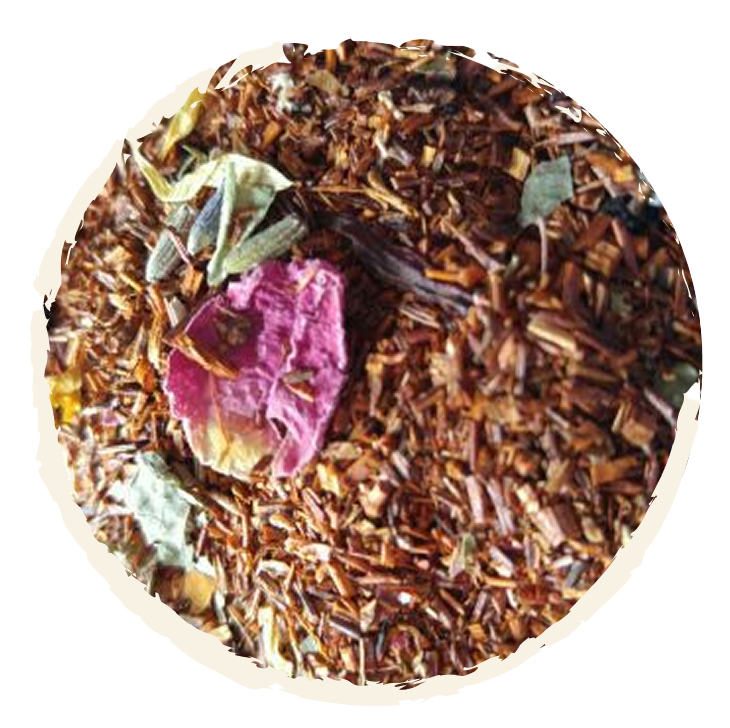No Caffeine Organic Ingredients: Red Raspberry Scented Red Rooibos, Blueberry Scented Red Rooibos, Elderberries, Rose Petal